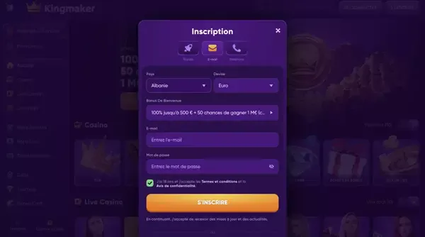 Sur casino Kingmaker France, les dépôts via les méthodes EUR courantes sont instantanés : vous pouvez donc passer de l’inscription au jeu sans attente. Vous pouvez aussi voir des demandes de confirmation d’e-mail, ce qui nous aide à sécuriser le compte et à faciliter sa récupération. Si quelque chose n’est pas clair pendant l’inscription, le chat en direct est disponible pour vous guider.